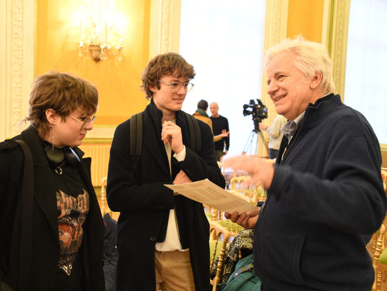 3ème temps : Remise du prix Varenne du dessin de presse lycéens 2025 suivie d’un échange entre les dessinateurs de presse, Nicolas Rocher et les élèves et professeurs des différentes écoles présentes (cf. photo (*)).